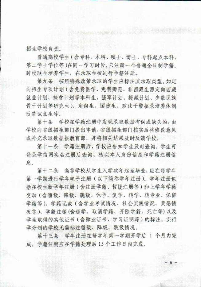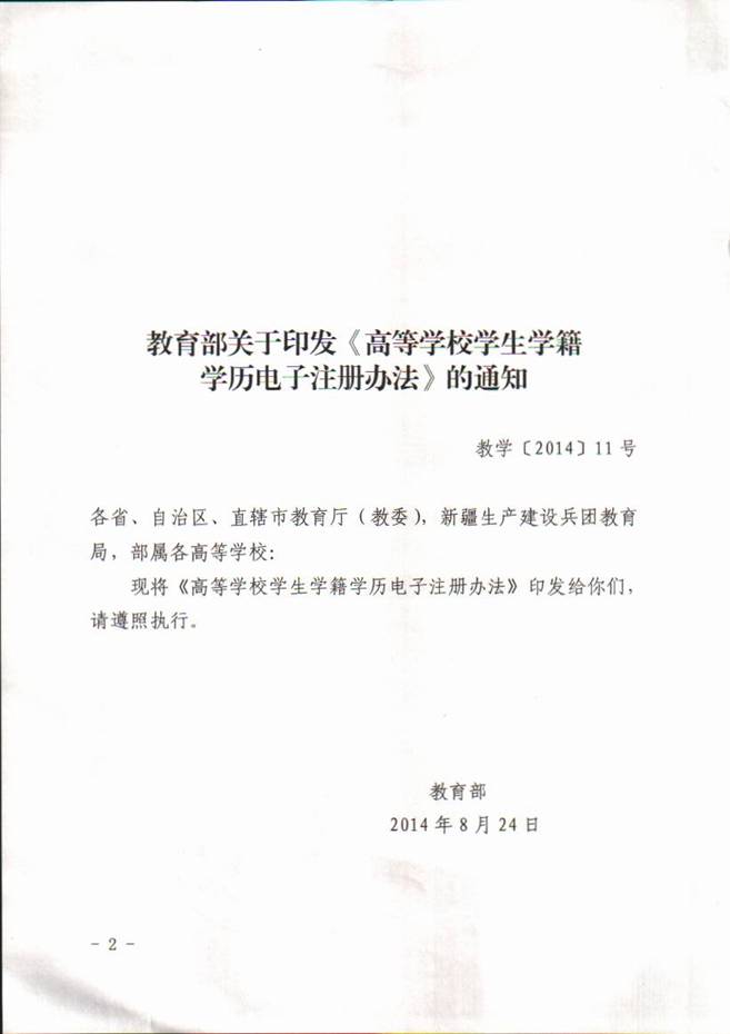 教育部《高等学校学生学籍学历电子注册办法》(京教学[2014]3号)