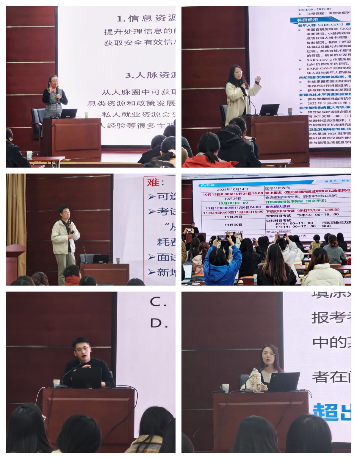 “秋招就绪,你准备好了吗?”首都医科大学研究生院王欣苗老师结合医学毕业生真实求职案例,系统梳理秋招备战的关键要点。中心(院)25届博士毕业生代表就职于北京友谊医院的罗琴从自身职业发展路径切入,介绍医院医技、科研岗位求职经验;学术型硕士毕业生吴彦霖则围绕公务员考试求职展开经验分享;就职于上海市青浦区卫发中心的潘宁宁则针对事业单位考试求职进行深度解析。杜斐、周圣杰老师解析了行测、申论近三年国考考情及备考,梳理各模块命题规律与解题技巧。