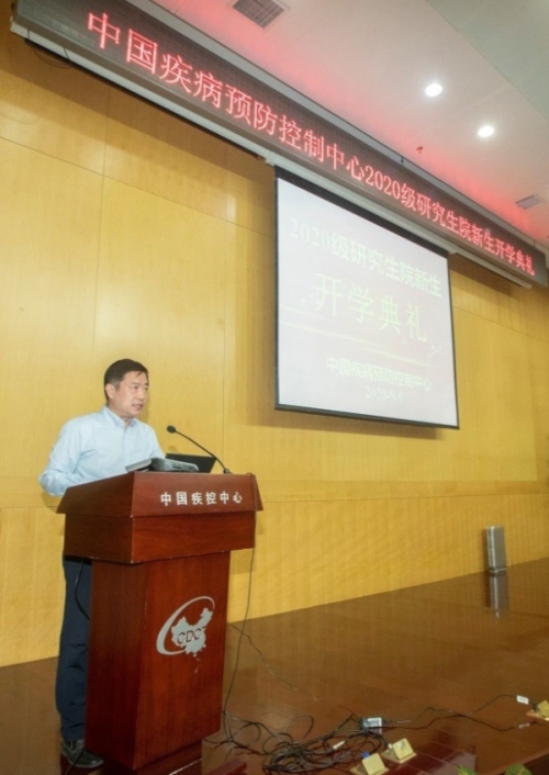 9时整,典礼在庄严肃穆的国歌声中拉开了序幕。首先,新生代表--艾防中心2020级硕士生刘杰同学发言。她回顾了自己及同学们挥洒汗水为梦想奋斗的考研之路,并表示2020级全体研究生将借助中国疾控中心的科研、实践平台,学会学习、博采众长,强素质、塑形象,成长为新时代“公卫人”。CFETP第19期学员代表--江西省疾控中心吴静发言时表示,全体19期学员将踏着前辈们的足迹,坚持“干中学、学中干”的宗旨,从有知识、有思想、有技能的学习者和接受者,成长为有新知识、新思想和新技能的创造者和贡献者。