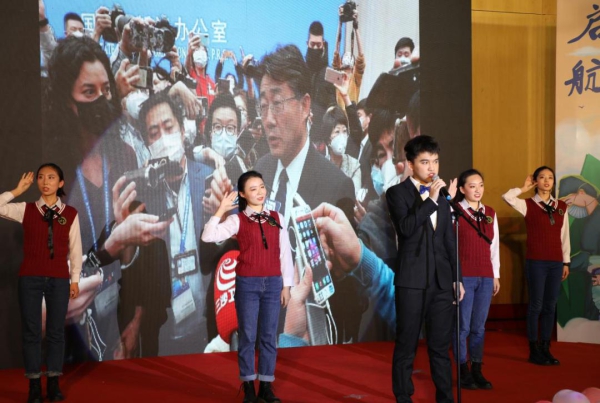 由昌平教学区同学带来的舞蹈《战疫》,姑娘们帅气利落的舞姿,一下让我们想到在抗击疫情大考中那些美丽的姑娘,优秀的战士,她们坚定信心迎难而上的身影,为她们点赞。串烧歌曲《余生,追光,爱世界!》用清澈悠扬的歌声表达了新时代对未来的美好期待和向往。
