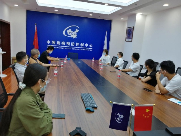 2021年8月4日下午,中国科学院北京基因组研究所副所长杨运桂老师专程来到疾控中心北区,拜访研究生院的师生。在中国疾控中心北区综合楼302会议室,中心办公室主任邹斌老师,研究生院副院长、教育培训处处长罗会明老师,中国疾控中心卫生信息首席专家、硕士生导师马家奇老师,病毒病所博士生导师刘军老师,研究生院教学部副主任刘学通老师,以及信息中心的研究生樊锐、杨子良、陈梦、崔瑾钰同学等齐聚一堂,亲切座谈交流。