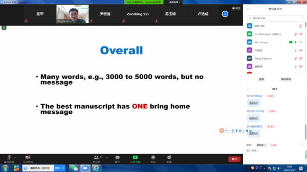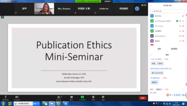 2021年1月27日上午,中国疾控中心研究生院举办英文科技论文写作科研诚信与伦理专题讲座,邀请国家外专局授聘外国专家Jennifer McGoogan博士和中国疾控中心流行病学首席专家吴尊友研究员,以“英文科技论文写作科研诚信与伦理”为主题线上授课。中心在读博士研究生、2018-2020年新增博士生导师、硕士生导师、专业技术人员、各单位(部门)教育培训管理老师以及中心部分硕士研究生等近300人线上聆听讲座。讲座由中心教育培训处(研究生院)戴政副处长主持。